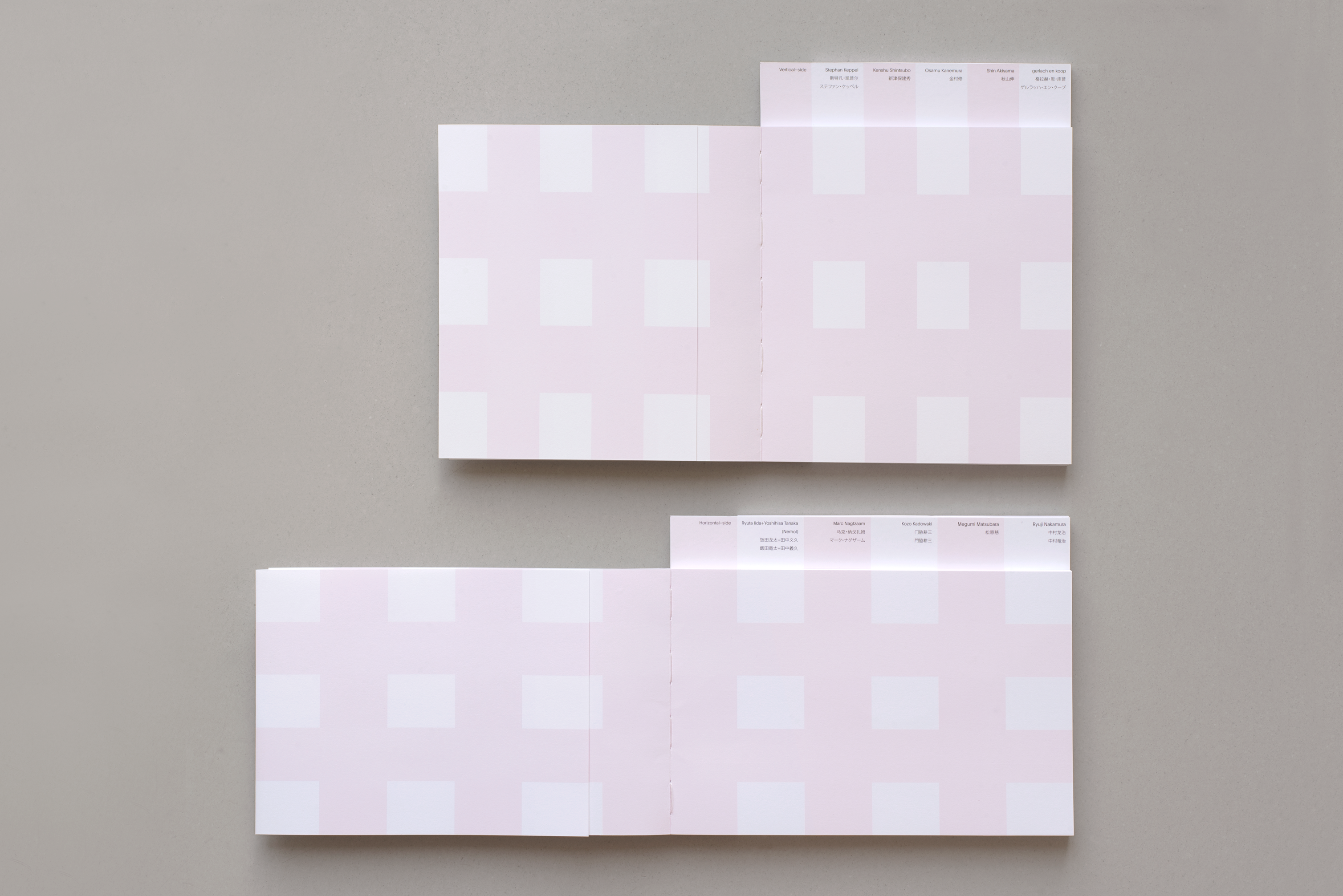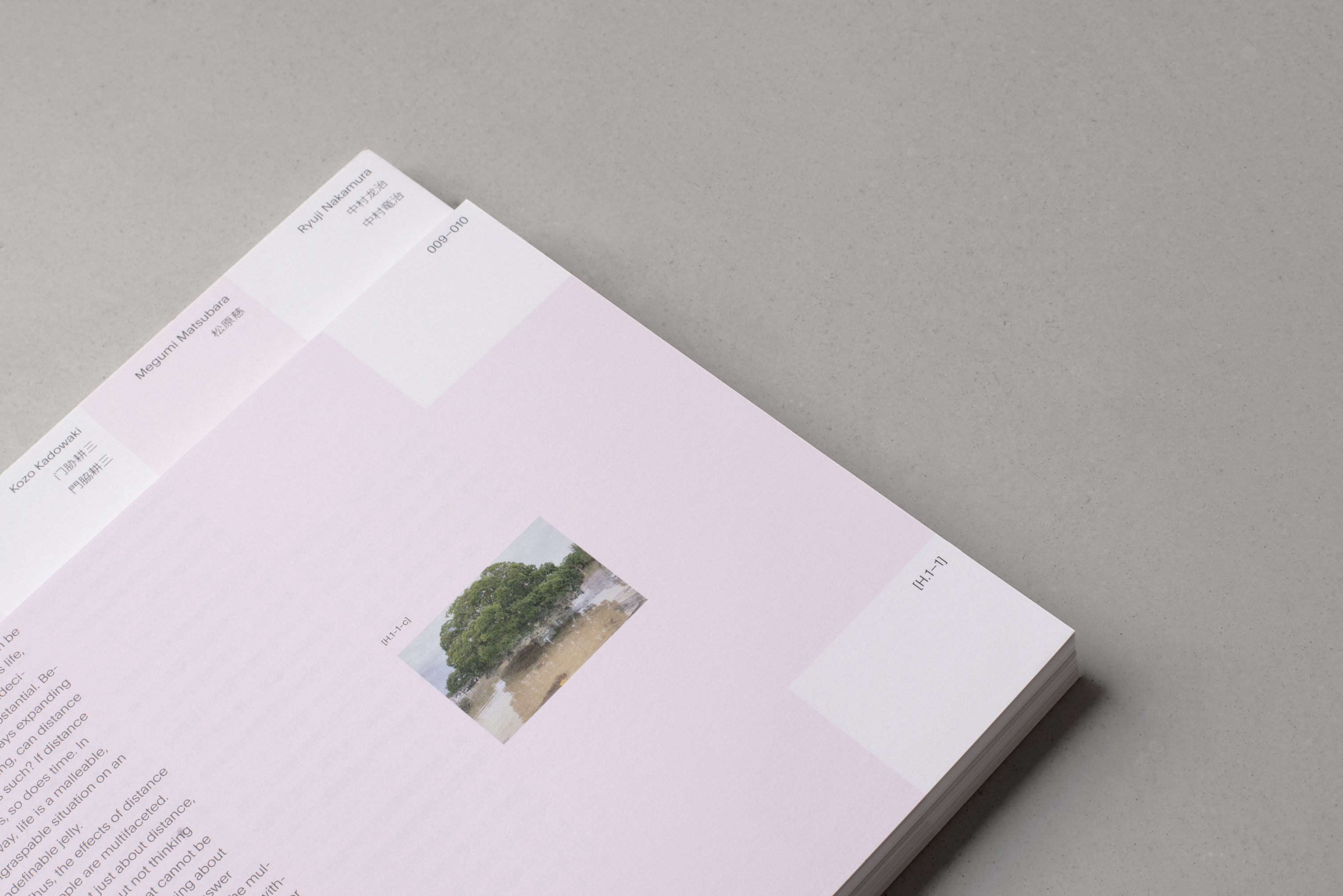Within this dialogue, the identities of those participating have been hidden from one another, only to be revealed upon its conclusion. This is an instance of “distance”, a boundary creating a relationship between dialogue and theme. This dynamic can too be seen within the form of this book; just as these ten contributors speak back to back, this book is divided into two distinct halves placed back to back—their contrasting directionalities, vertical and horizontal, defining a physical boundary which separates them.